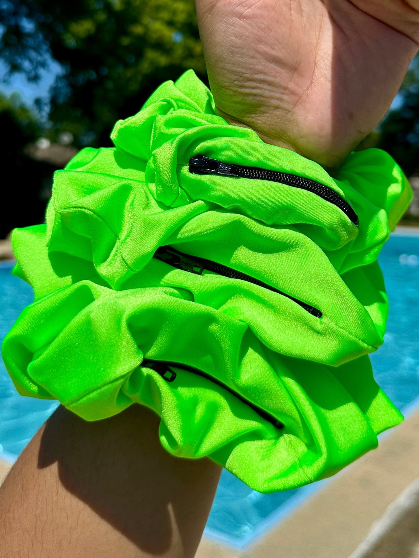 Meet your new go-everywhere essential. Designed to move with you from sun-soaked swims to sweat sessions, this Quick-Dry Luxe Scrunchie isn’t just pretty—it’s practical. Made with ultra-fast-drying fabric, it keeps your hair secure and your essentials close, thanks to a discreet zip pocket perfect for stashing keys, cash, or a swipe of lip gloss.
